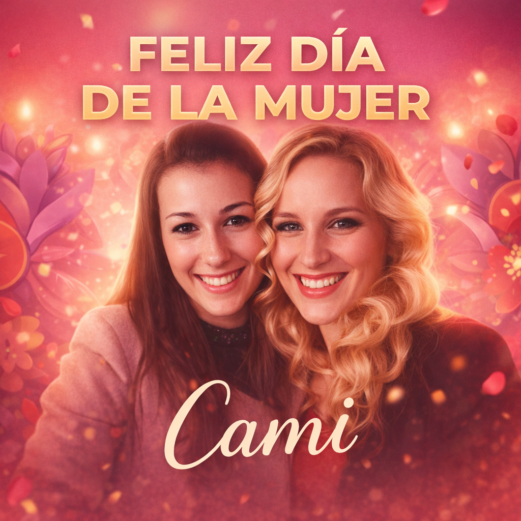 Quita el texto de abajo y que diga Cami en grande y el texto de arriba que no se corte y cambia el filtro algo las rosa cálido bonito