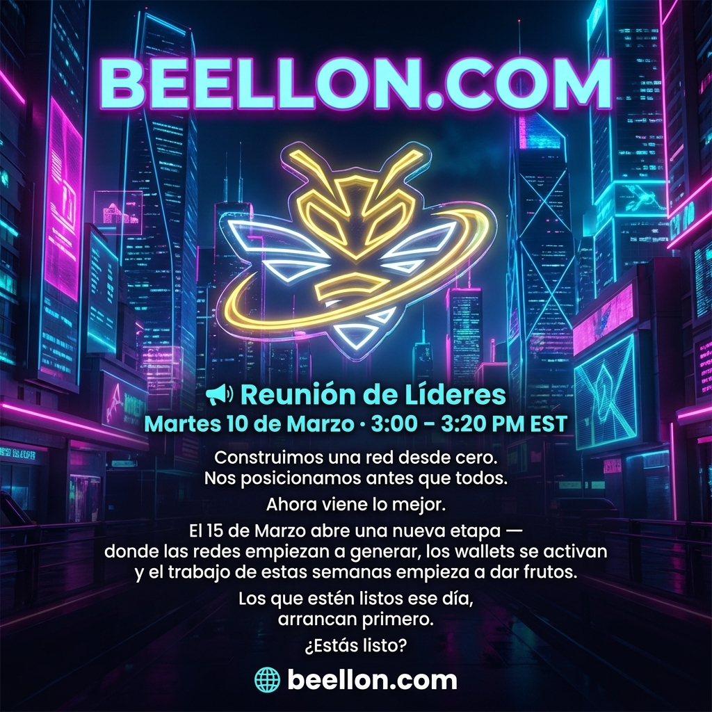 BEELLON.COM 📢 Reunión de Líderes Martes 10 de Marzo · 3:00 – 3:20 PM EST Construimos una red desde cero. Nos posicionamos antes que todos. Ahora viene lo mejor. El 15 de Marzo abre una nueva etapa — donde las redes empiezan a generar, los wallets se activan y el trabajo de estas semanas empieza a dar frutos. Los que estén listos ese día, arrancan primero. ¿Estás listo? 🌐 beellon.com