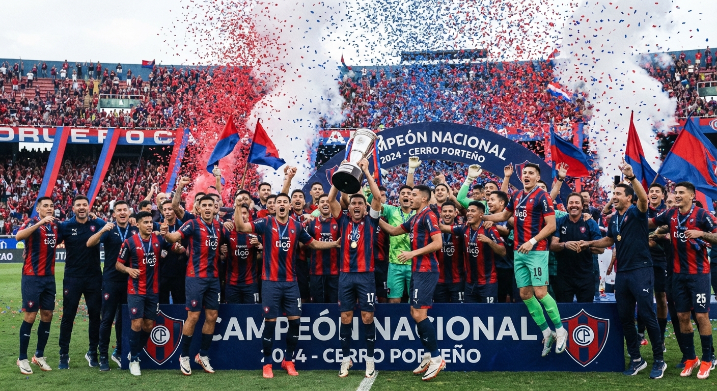 Generar imagen del club deportivo Cerro Porteño de Paraguay celebrando el campeonato Nacional , todos los jugadores leva...
