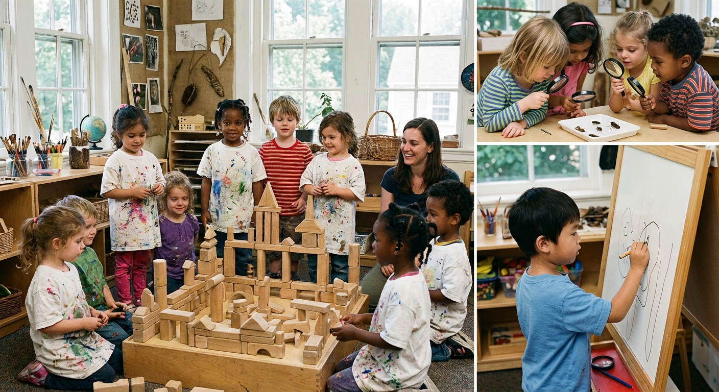 Crianças frequentando pre-escolar tornando-se muito interessantes